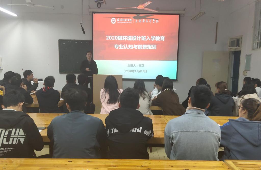 为了使我院20级环境设计专业新生能更好的了解所学专业内容,做好大学期间的学习及规划,11月19日,我院在艺术楼308教室召开环境设计专业认知与前景规划讲座。全体20级环艺专业新生参会,会议由我院辅导员胡霁芳主持,环境设计系主任高正博士主讲。
