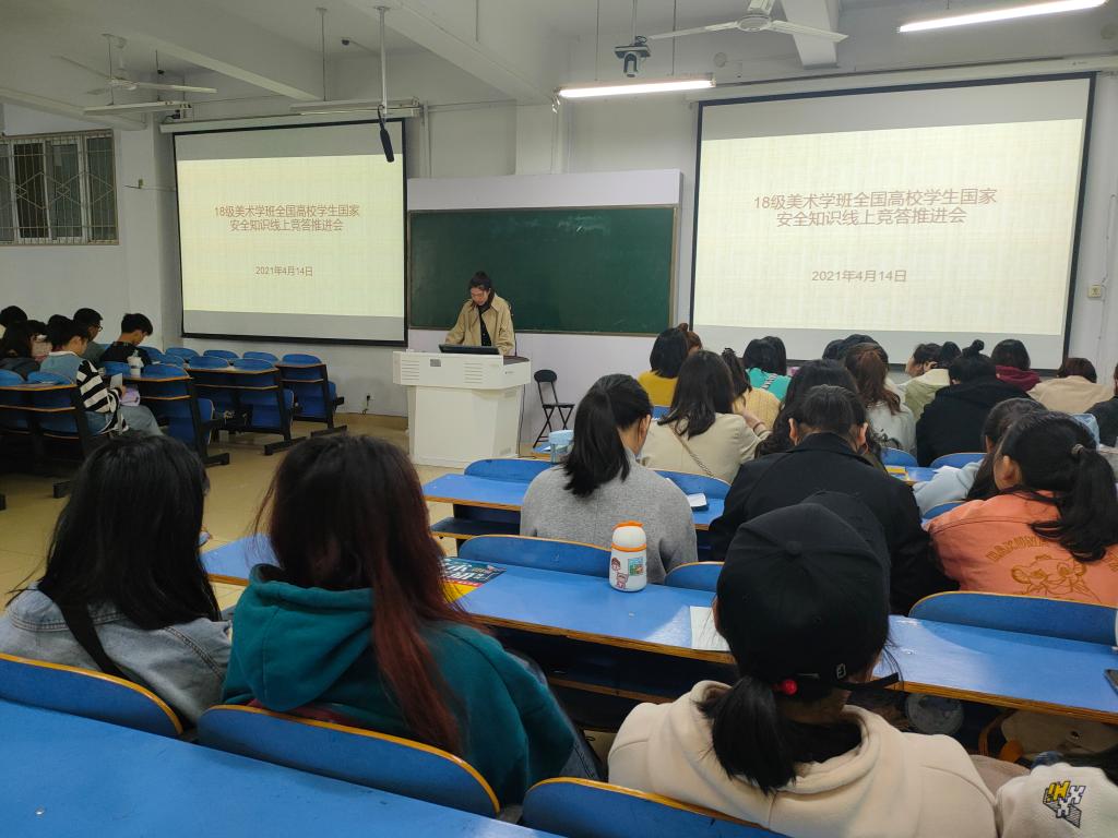4月14日,各班利用课间时间召开国家安全教育日主题宣讲专题班会,集中组织学习,积极参与“全国高校学生国家安全知识线上竞答”,4月15日,各班组织班级学生在画室、寝室、课间观看“全省教育系统全民国家安全教育日主题宣传教育活动启动仪式”活动直播,学院在艺术楼307统一组织部分师生观看启动仪式。通过微信微博及时进行宣传教育,进一步扩大活动的覆盖面与影响力,教育引导学生提升国家安全意识,自觉维护国家安全,为全民国家安全教育日营造良好的环境与氛围。