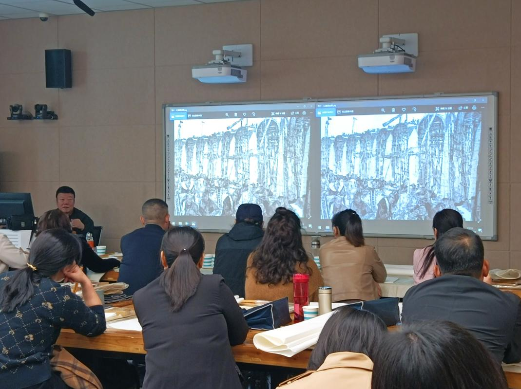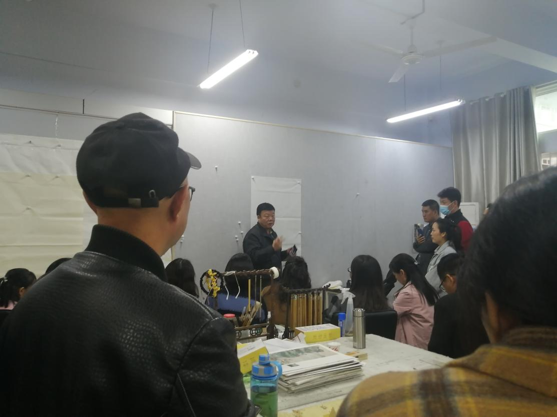 10月10日下午,袁汝波教授在我院给2021年“国培计划”骨干教师提升培训项目初中美术教师培训班的学员们进行现场示范教学。袁汝波教授先分享了个人的油画作品,同时分享了一些技巧,随后在现场选取了一位学员进行示范教学。