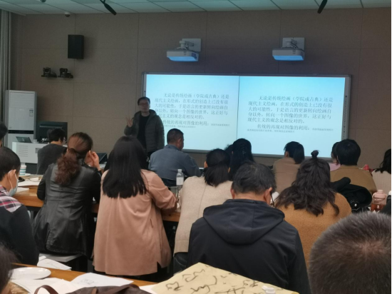 10月19日下午,应我院邀请,刘永胜教授在艺术楼217教室给2021年“国培计划”骨干教师提升培训项目初中美术教师培训班的学员们进行现场教学。40余名国培学员聆听了报告。报告会由我院副院长张伟主持。
