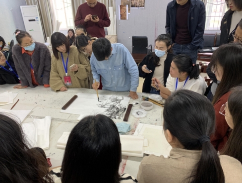 10月25日下午,应我院邀请,曹辉老师在艺术楼217教室给2021年“省培计划”骨干教师提升培训项目小学美术教师培训班的学员们进行现场教学。40余名省培学员聆听了报告。
