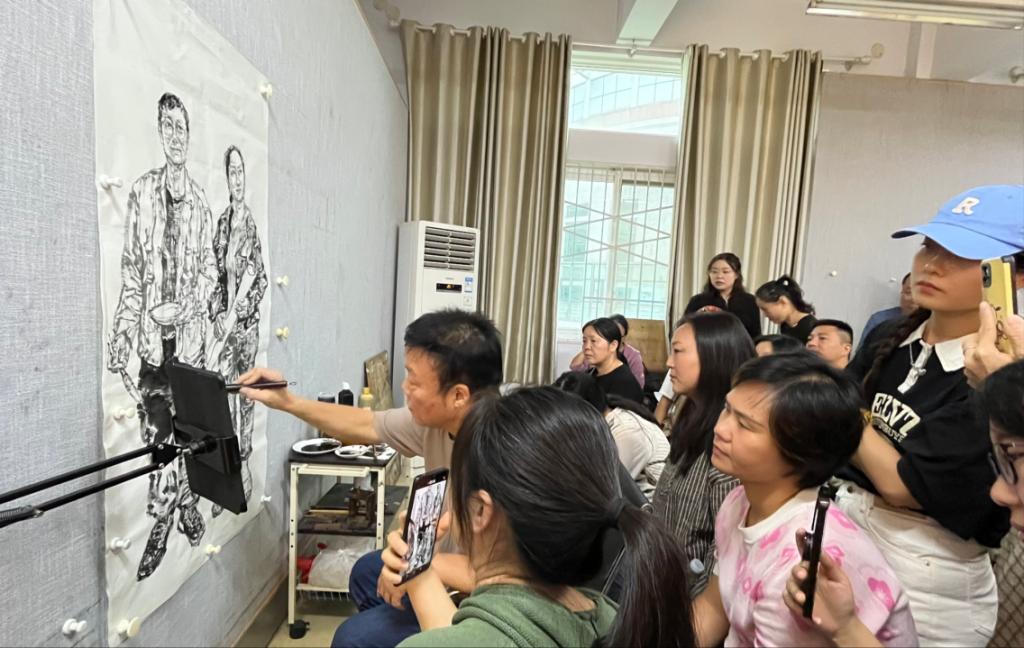 理论讲解过后,袁汝波老师为学员们现场示范。他表示,“写”要有书写性,“意”要讲究气韵,写意人物画对线描的要求极高,需要平时做大量速写训练的积累。绘画过程中,袁汝波老师时常停下来和学员进行短暂探讨,在观察画面的同时及时回应学员们的问题。