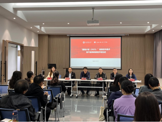 10月10日,上午八点半,我院在实训楼艺言堂举行“国培计划”省级初高中美术骨干教师开班仪式,我院党委书记兰洋、党委副书记周刚、院长邹东升、副院长董建义、国培首席专家甘露,研修班主任刘晓及全体研修班学员参加了开班仪式。开幕仪式由刘晓老师主持