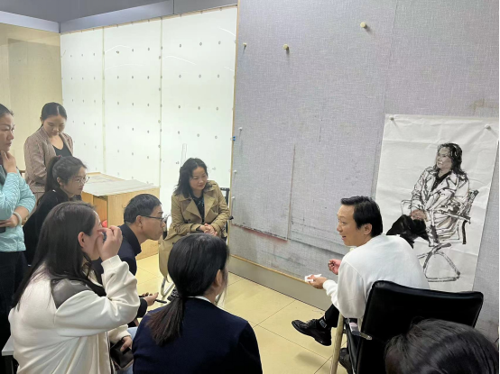 本次讲座中,郭老师向学员讲解了水墨人物画的创作基本要点以及从课堂写生、现实照片、作品借鉴入手,画好写实中国水墨人物画,进行详细理论讲解。随后郭建明老师对多幅创作的这个水墨人物画作品进行鉴赏,对学员耐心讲解其中的绘画技巧及学习方法。最后郭老师在现场进行示范写生,学员们纷纷围坐在他身边学习,示范过程中郭老师边画边为学员们讲解,学员们表示受益匪浅。