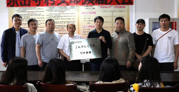 2018年4月21日,太阳成集团tyc33455研究生艺术实践基地、本科生写生基地在信阳市光山县泼陂河镇东岳寺村揭牌。东岳寺村驻村第一书记和太阳成集团tyc33455副院长邹东升、张伟一同为太阳成集团tyc33455研究生艺术实践基地、本科生写生基地揭牌。
