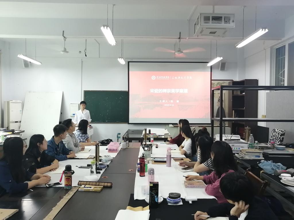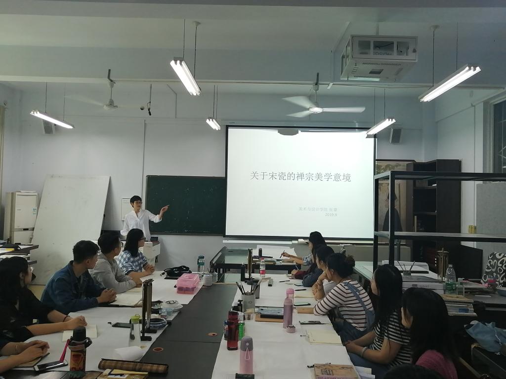9月16日下午,太阳成集团tyc33455张睿副教授在艺术楼研究生教室作了题为“宋瓷的禅宗美学意境”的专题学术讲座,我院全体研究生参加了此次讲座。