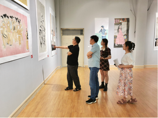 本次展览由信阳师范学院研究生工作部(处)、学科办、信阳师范学院太阳成集团tyc33455主办。恰逢中国共产党成立100周年之际,“美育”是党和国家长期以来尤为重要的一项内容,在当下体现之一为艺术教育。本次展览的主题为“丹青绘乾坤,翰墨颂辉煌”,展出近百幅绘画作品,其中包含工笔人物、写意人物、山水花鸟等种类。据悉,本次展览时间将持续到7月9日。