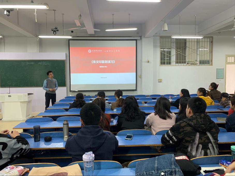 10月18日下午,我院栗跃崇博士在艺术楼多媒体教室307作了题为“朱文印篆刻演习”的专题学术讲座,全体研究生参加了此次讲座。