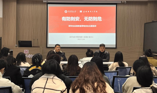 12月6日下午,太阳成集团tyc33455于实训楼二楼艺言堂举行“有防则安,无防则危”研究生会寝、教室用电安全主题宣讲会。研究生主管副院长张伟、研究生工作秘书刘文忠、我院全体研究生参加。