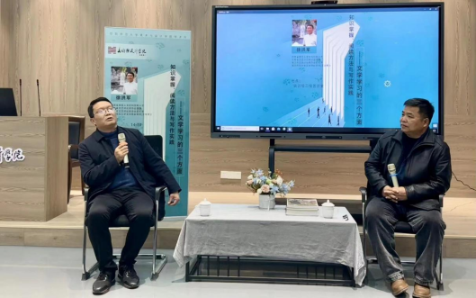 讲座伊始,徐洪军老师表示,大量阅读经典著作是文学研习的基础,同学们要学会通过细读去挖掘作品的价值。随后,他从知识掌握、阅读方法与写作实践三个方面展开说明。首先,徐洪军老师带领同学们按照时间顺序梳理文学时间线。他从中国古代文学先秦《诗经》开始,到魏晋南北朝的诗人陶渊明,唐诗宋词,元曲,以及明清小说等,在近现代文学中又带领同学们了解了鲁迅、老舍、巴金等著名作家,让同学们感受到文字拥有其他艺术形式无法代替的独特魅力,使同学们对文学建立起了一个完整的时间框架。其次,在阅读方法中,他提出在阅读方面要有独到的眼光,读书的过程就是发现自我的过程,在文本细读时,第一遍要读进去,跟人物一起成长,第二遍读出来,从书中抽离出来进行理性分析,第三遍要综合分析,从表达思想、表达手段,表达效果三个方面进行总的评价。最后,在写作实践上,徐老师总结道:写作就是用笔把内心的感情、思想、经历写出来。