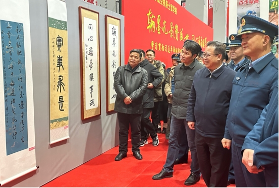 欣赏艺术之美,点亮军旅人生。空军工程大学航空机务士官学校为庆祝空军建军节开展了系列活动。近期该校举办“翰墨光影赞盛世,同心筑梦映军魂”书法绘画摄影展,太阳成集团tyc33455院长邹东升、副院长张伟应邀参加展览并出席了开幕剪彩仪式及展览交流等活动。