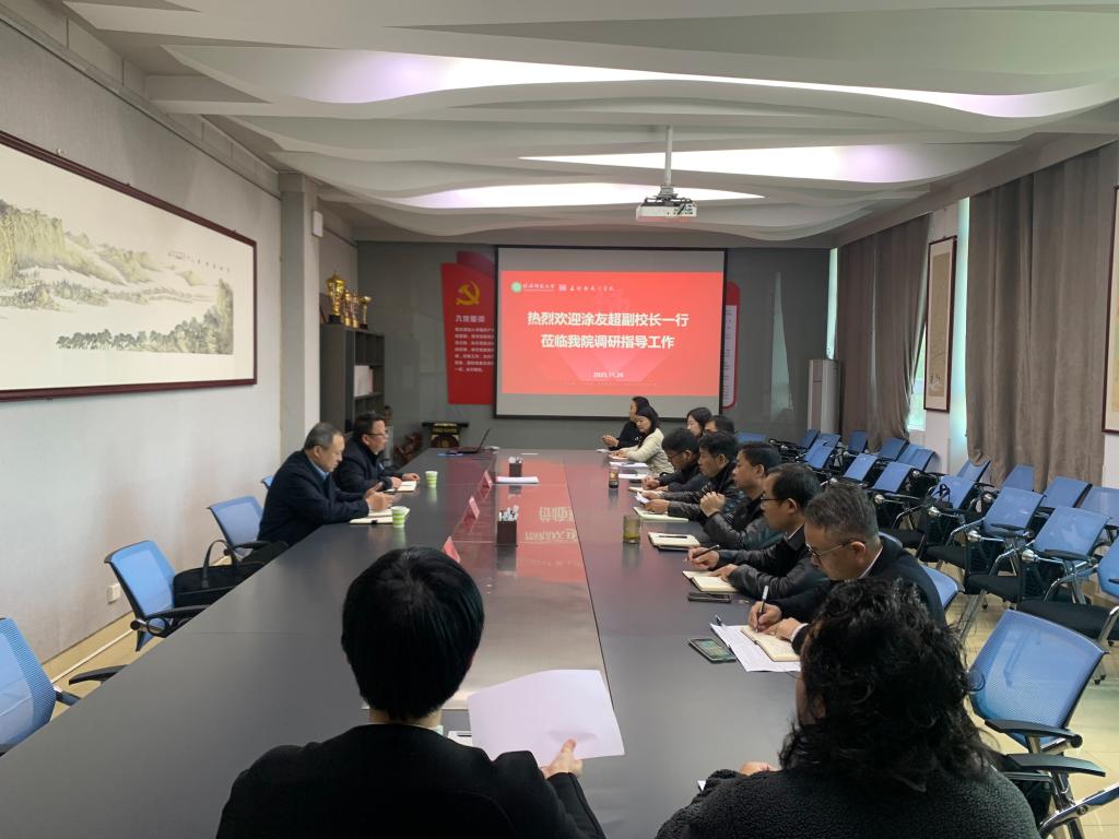 11月26日,副校长涂友超、社科处处长吕东亮一行到我院开展科研工作专题调研指导。我院全体班子成员、科研骨干教师代表参加会议,会议由吕东亮处长主持。