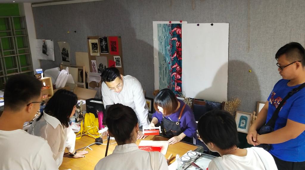 本次学术讲座主要以版画的两大基本属性为切入点。首先,朝晨针对“版画是什么”这一问题展开论述,就版画的种类、属性、制作技艺等方面进行详细的讲解。并以相关视频、PPT、照片的形式,让大家对版画有了基本的了解。随后,通过列举大量中外知名的版画作品,进行比较分析,重点讲解了版画的发展历程以及东西方版画的差异。最后,朝晨通过现场教学的方式对版画制作的前期准备、工具内容、绘制与雕版步骤、制作完成后的整理与保存方法进行逐一讲解。朝晨精彩的现场讲解与悉心指导,使在座学生受益匪浅。