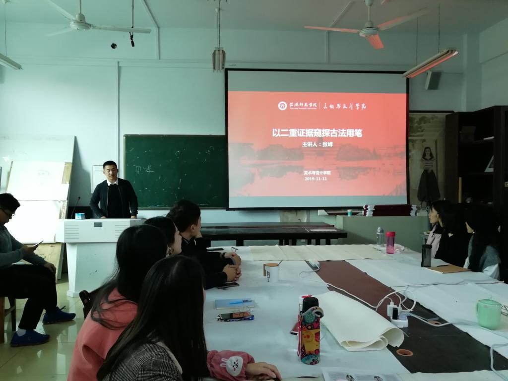 11月11日下午,太阳成集团tyc33455研究生教室座无虚席,研究生学术讲座活动如期举行,张峰老师应邀为我院研究生作了题为“以二重证据窥探古法用笔”的学术讲座,学院全体研究生到场聆听了此次讲座。