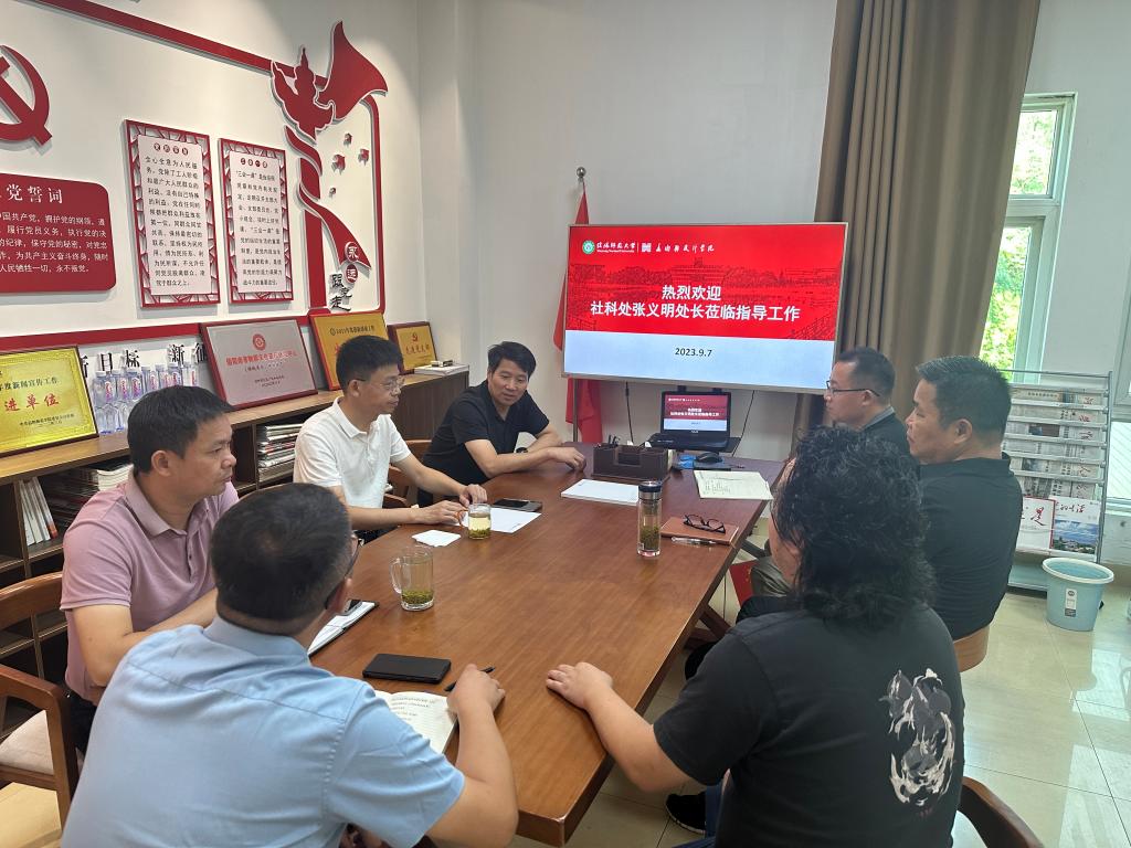 9月7日,社会科学处副处长张义明教授莅临太阳成集团tyc33455调研指导,我院全体领导班子及教师代表参加会议。