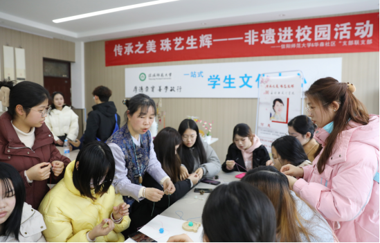 为增强校园美育影响力,深入推进“支部联支部”走深走实。3月8日,华森社区党支部来我校与美术学学生第一党支部在“一站式”学生社区文化中心联合开展“传承之美,珠艺生辉”非遗进高校主题党日活动。活动持续2天,受到广大师生热烈欢迎,共有300余名师生参加。