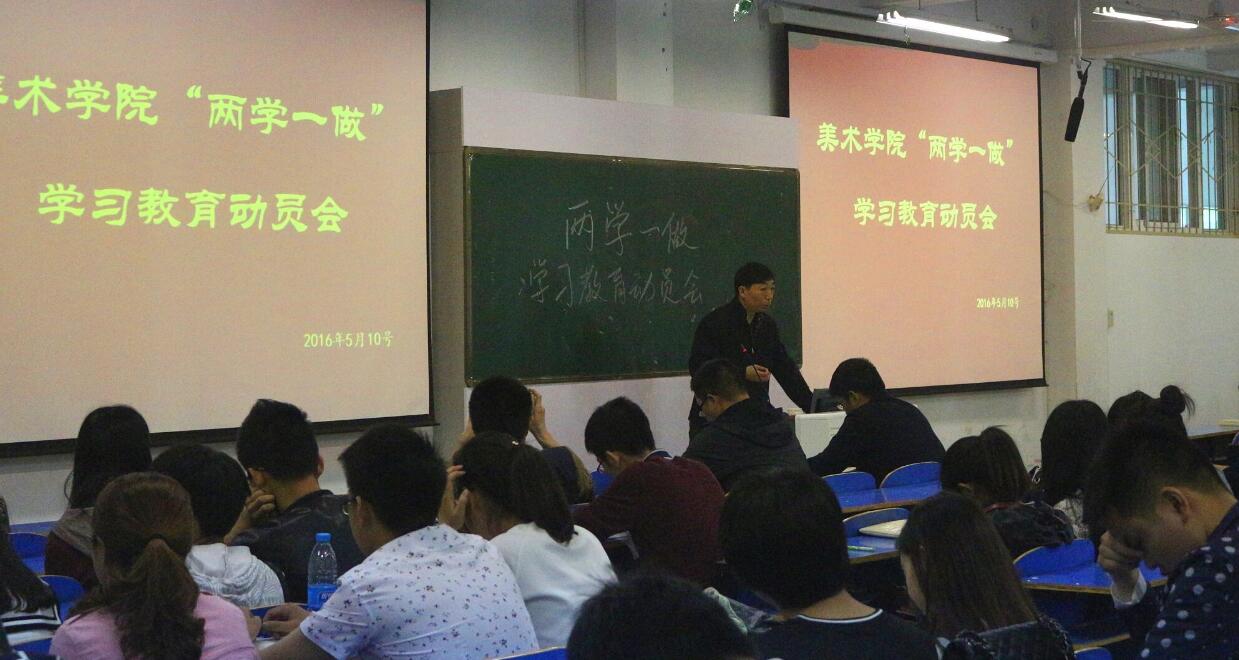 为深入贯彻习近平总书记系列重要讲话精神,全面推动从严治党向基层延伸,5月10日下午,美术学院在艺术楼307室召开“两学一做”学习教育动员会。学院党委书记周子良、副书记李孝民,副院长张伟等教职工党员及学生党员共同参加会议。会议由李孝民主持。