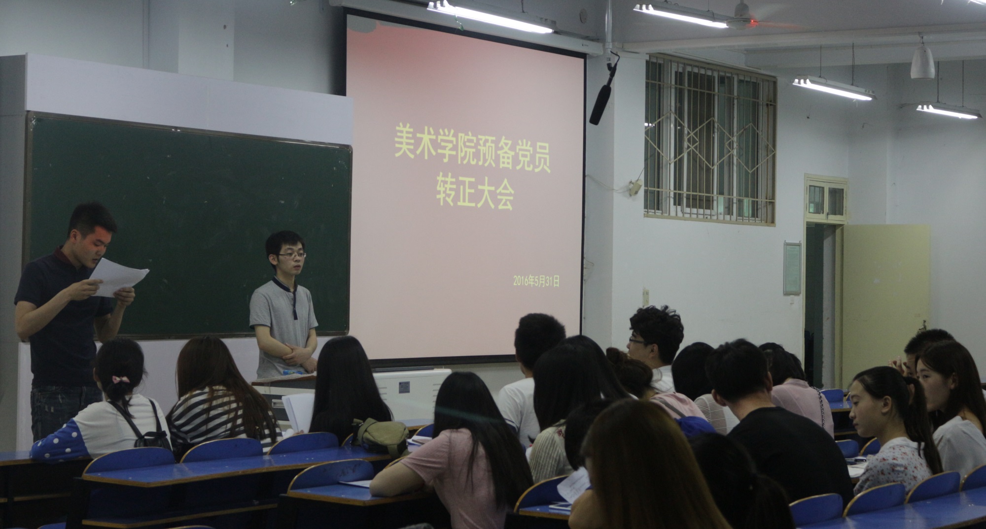 5月31日上午,美术学院在艺术楼307室举行接受预备党员转正大会,学生党员九十余人共同参加。会议由党支部书记施远主持。