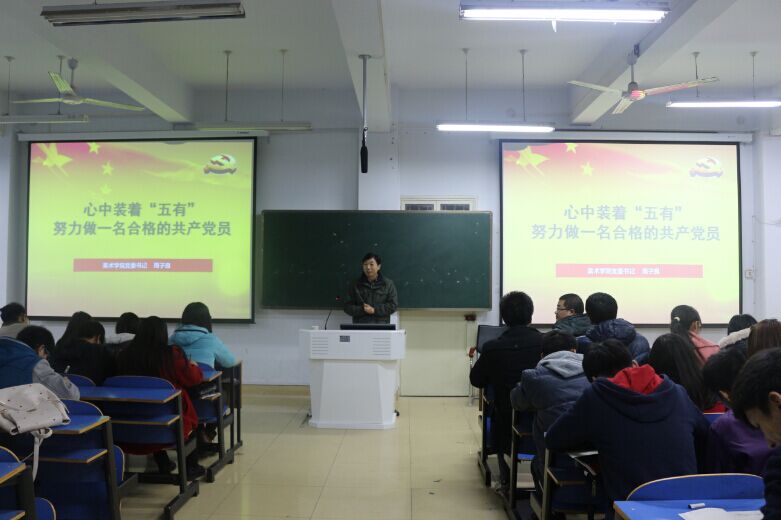 11月20日晚,美术学院党委书记周子良应邀为我院分党校的入党积极分子作报告。美术学院团总支书记周贤亮,辅导员张锐、施远及美术学院分党校2015年第2期全体学员参加。