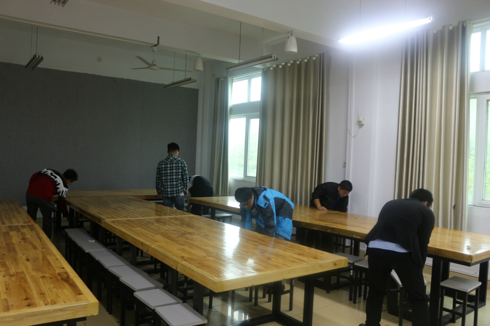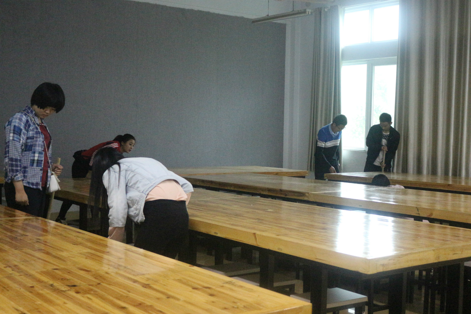 在进行打扫之初,学员们就之前分配好的小组进行分组,各小组按照分配前往自己小组的卫生区。打扫过程中,大家配合默契、互帮互助、吃苦耐劳,不仅将地面打扫干净,桌凳摆放整齐,并对教室的各个墙角、窗户以及窗户的缝隙进行彻底的清理。在大家齐心协力的合作努力下,每间公共教室都打扫的干干净净,每位学员的参与热情都非常高涨。活动最后,全体参与人员在艺术楼前合影留念。