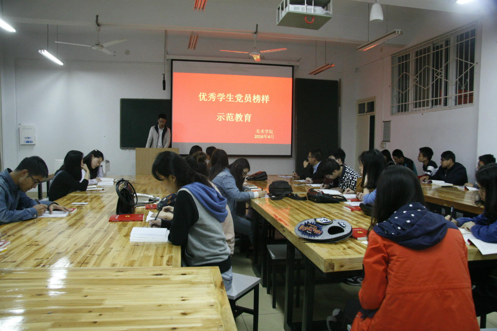 为更好端正入党积极分子的思想动机,发挥优秀学生党员的榜样力量。4月24日晚,美术学院第25期党员发展对象培训班学员在艺术楼公共教室308开展“优秀学生党员榜样示范教育”为主题的实践活动,旨在提升入党积极分子的思想觉悟。