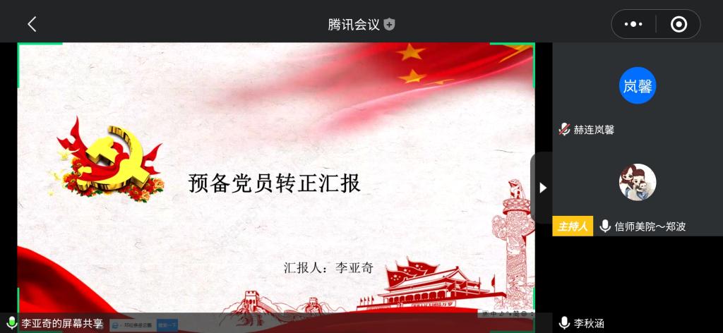 受疫情影响,5月25日,我院于线上召开预备党员转正支部大会,各党支部书记、全体正式党员、预备党员共同参与本次会议。会议由各党支部书记主持。