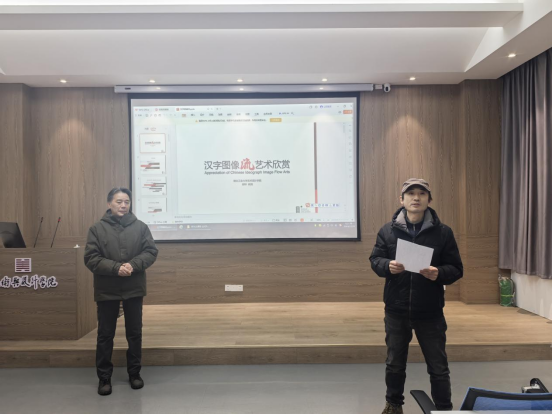 12月16日上午,太阳成集团tyc33455于实训楼二楼艺言堂举办题为“汉字图像流艺术欣赏”的学术讲座,本次讲座由柳林教授主讲,研究生导师刘文忠及我院全体研究生参加。讲座由副院长张江波主持,