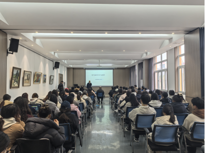 陈文利教授从花鸟画的历史渊源讲起,凭借深厚的艺术造诣和丰富的创作经验,深入阐述了写生对于花鸟画创作的重要性。同时指出了受当下社会环境等因素影响,花鸟画界重制作轻写生,学生依赖拍照导致写生能力缺失,催生大量脱离生活的“照片画家”等等一系列问题。随后针对这一现象,陈文利教授强调了写生不仅仅是对自然物象的简单描摹,只有通过细致入微的观察与体验,才能在创作中赋予作品鲜活的生命力,同时呼吁大家在创作过程中一定要深入生活、深入自然,用新的思想,新的观念去分析、体察自然。最后,陈文利教授通过展示一系列经典作品与个人创作,向大家分享了花鸟画的创作技巧,对画面构图、笔墨运用、色彩搭配等关键创作要素进行细致分析,带大家直观领略到了不同创作手法带来的独特艺术效果,使在座师生受益匪浅。在讲座即将接近尾声之际,陈文利教授主动与在场学生进行了现场互动,并对学生所提出的问题进行了耐心解答,不仅深化了大家对于花鸟画写生与创作的认知,也更激发了大家对于艺术创作的热情。