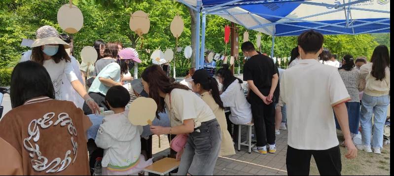 团扇摇摇,美人袅袅。作为中国传统的工艺品,团扇素来被文人墨客赋予了柔软而又浪漫的想象。所以此活动一经提出便得到了大家的积极响应。虽然天气炎热,但现场还是来了很多学生、家长和孩子,我院副院长张伟、党委副书记周刚前来指导观看,非常热闹。