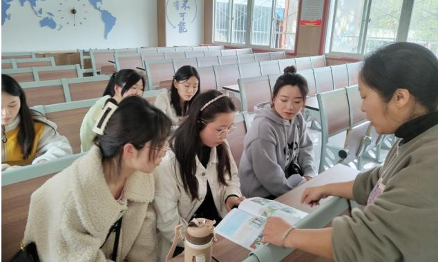 教育见习活动主要是观摩陈文丽老师的课堂教学,同学们通过听课、提问、交流进行了一下午的学习。陈文丽老师首先向见习学生介绍了浉河中学美术教学的开展情况与课程特色,随后,为大家展示公开课《凝练的视觉符号》。陈老师在课堂上非常注重与学生的互动,通过生动的课堂语言,调动学生的积极性和自觉性,有效地提高了学生的艺术感知能力、形象思维能力、创新创造能力,让大家充分领略到了一线教师扎实的教学基本功。