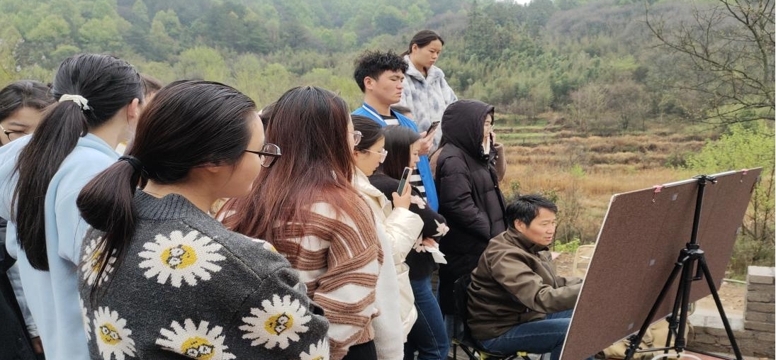 带队的邹东升、张伟、张江波三位研究生导师组织参与了艺术写生教学的全过程。他们与学生一起同吃同住同景写生,认真指导学生如何取景,如何组织画面,如何去发现生活中的美。为学生示范、点评、赏析名家作品,讲解具体到位,细致深入,学生受益匪浅。写生教学期间,导师带领同学们还参观了许世友将军故里,给同学们讲述了许世友将军的传奇故事及新县的红色革命斗争历史,游览了田铺大湾、古树名木博古馆等地,把课程思政和美育融进艺术写生教学,丰富了同学们的绘画创作素材,增加了同学们的文化阅历,也让师生们共同接受了一次红色革命传统教育。在紧张的学习之余,师生们还利用晚上举办了包饺子、篝火晚会等团建、娱乐活动,师生欢聚,其乐融融,进一步增强了班级凝聚力,拉近了师生之间的距离。