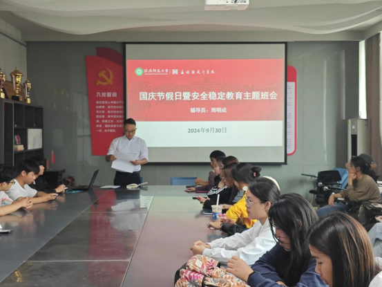 安全无小事,责任重如山。国庆佳节的日益临近,为确保每位同学能够度过一个安全、愉快的长假。我院积极响应学校关于假期安全教育的要求,组织全院各班级线上线下召开了国庆假期安全教育主题班会。