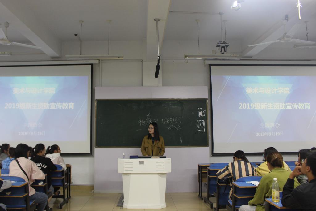 为进一步做好我院学生资助政策宣传工作,让2019级新生更详细的了解国家高校资助政策,9月19日,我院在艺术楼307室开展了2019级新生资助宣传教育主题班会,我院辅导员胡霁芳及19级环境设计专业和美术学专业的同学共同参加此次主题班会。