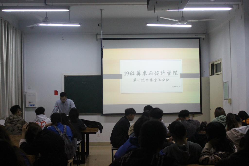 10月19日夜,我院2019届第一次全体班委会于艺术楼307召开,19级各个班的班委参与本次会议,会议由美术学二班的班长赵文博主持。