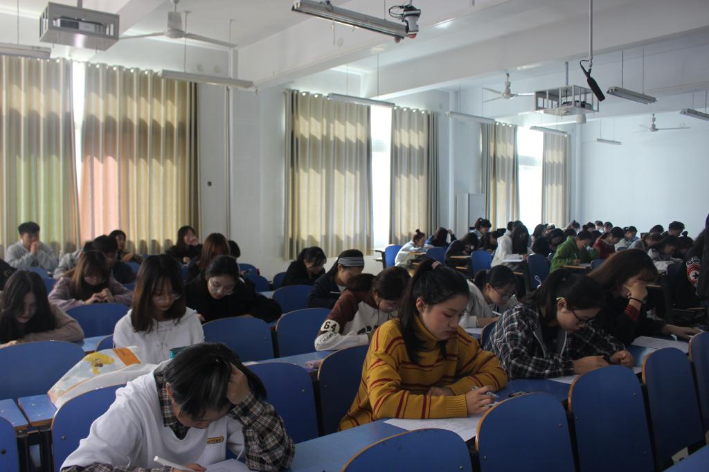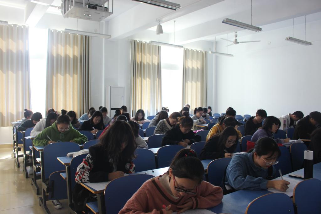 为了加强大学生的爱国热情,11月12日,我院于艺术楼307开展2019年国防知识竞赛,2019级部分班级同学参与本次竞赛。考试由学生会学术部部长及副部长监考。
