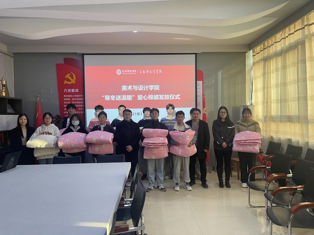 为确保学生温暖过冬,11月26日,我院于艺术楼会议室举行2021年“寒冬送温暖”爱心棉被发放仪式。党委副书记周刚,团委书记郑波,辅导员饶海虹、胡霁芳老师及领取棉被学生代表参加此次活动。