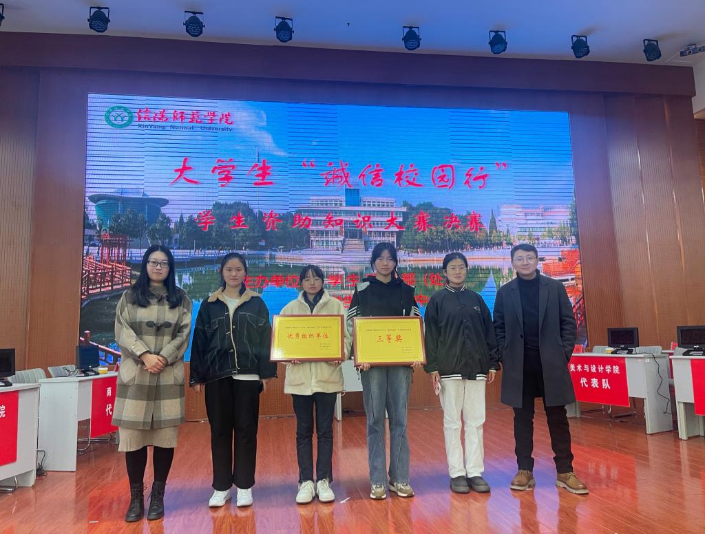 本次大赛以“昂首阔步新时代,树信立德展风采”为主题的征信、金融、风险、法律等大学生资助知识的竞赛,采用知识问答竞猜的方式,分为初赛和复赛两个阶段。经过初赛的激烈比拼,我院学子刘芳蓉、冀洋洋、赵艺涵、孔春花、组成的美院代表队成功进入决赛阶段。