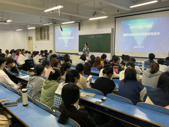 10月8日,我院在艺术楼307开展资助政策宣讲主题班会,此次班会由新生班主任胡霁芳主持,参与人员为22级全体新生。