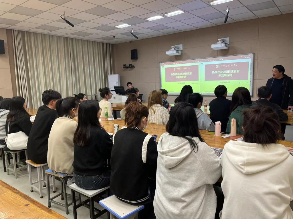 为了做好毕业生就业工作,助推2023届毕业生顺利就业。2023年4月3日,洛阳远达画室在我院艺术楼217教室举办信阳师范学院专场招聘宣讲会。画室校长时跃国一行5人及30余名应届毕业生共同参与,会议由郑波主持。