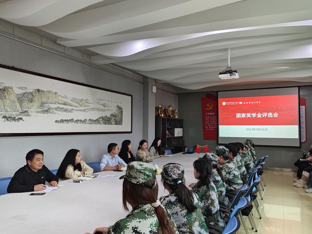 为做好国家奖学金评选工作,充分发挥奖学金的引领与激励作用,通过奖助育人,推进学院学风建设,鼓励学生勤奋学习、努力进取。我院于9月26日下午,在艺术楼204会议室召开2023年国家奖学金评选会。院党委副书记周刚,专业教师郑蔚、钱恒,辅导员郑波、胡霁芳、杨琳,国奖候选人刘昕雨、潘新宇、赵艺然、濮云梦及10名2023级新生代表共同参加,会议由郑波主持。