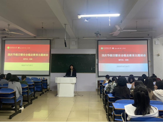 国庆假期来临之际,为增强学生安全防范意识,确保学生度过一个快乐、安全的假期,9月25日,我院于艺术楼307召开国庆假期安全稳定教育主题班会。本次班会由新生班主任杨琳主持,2023级全体新生共同参加。