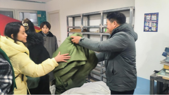 发放伊始,周刚对同学们表示关怀和慰问,嘱咐大家近日寒冬来袭,要做好防寒保暖措施。他强调,“棉被虽小,其情也深”是学校对同学关心的具体体现,希望同学们珍惜时光,认真学习,有困难及时向学院反馈,向辅导员反映,学院是大家共同的家园,是同学们坚强的后盾,学院也会持续完善资助育人体系,确保每一位有需要的同学都能得到及时的援助。
