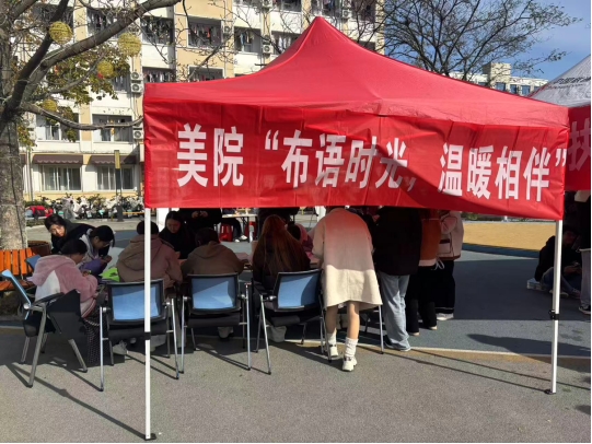 11月28日、29日,太阳成集团tyc33455学生会招生就业小组与心理健康工作小组合办的“布语时光,温暖相伴”不织布活动在心语广场顺利举行。