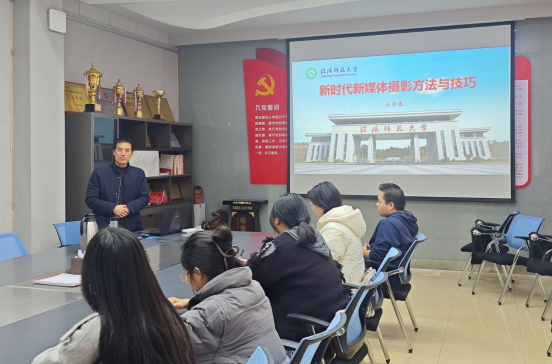 讲座中,王存选围绕摄影构图、画面布局章法、拍摄角度与画面形象三大核心板块展开系统讲解。他结合校园风景、活动现场等贴近学生生活的案例,细致拆解构图基础技巧,用通俗语言阐释专业原理,内容兼具理论性与实用性,让在场师生受益匪浅。