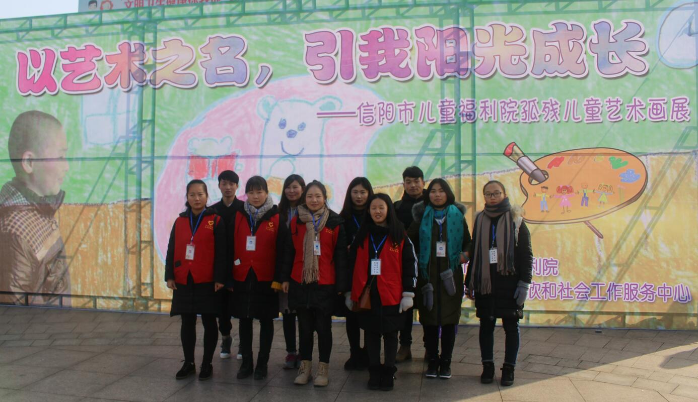 为弘扬志愿服务精神,丰富我院学生精神涵养,12月16日,我院大学生艺术设计协会、大学生书法爱好者协会成员于体彩广场积极参与信阳市“以艺术之名 引我阳光 成长”之儿童福利院艺术画展活动,进行志愿服务活动。