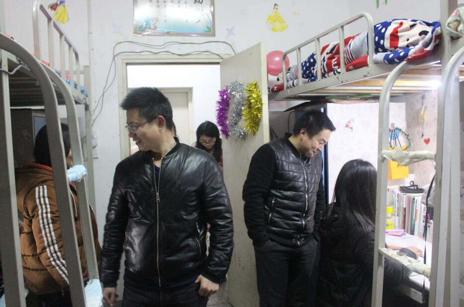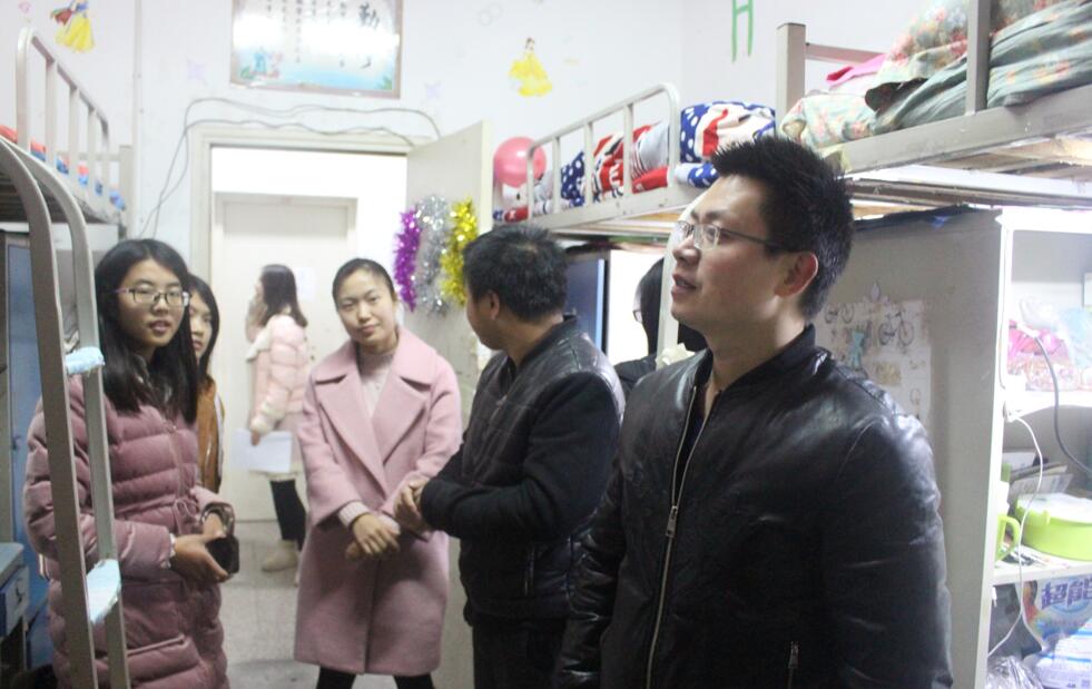 我院老师分成三组,在三个年级同时展开检查,全面的了解学生日常生活情况。在走访过程中,张锐表达了对学生最真挚的问候,谈到了学生宿舍的安全卫生问题,着重强调要注意宿舍通风并保持洁净,不能因为保暖而门窗紧闭,尤其不能藏匿违规电器。饶海虹询问学生的生活情况,提醒学生降温多加衣谨防着凉,并对学生期末备考给予了鼓励,指出平时可以利用空余时间进行复习。在走访期间饶海虹和郑波询问了学生元旦放假回家的情况,提醒学生回家期间要注意人身安全,可以选择和同学结伴而行。郑波就学生的体能素质等方面提出建议,今后可以多参加户外锻炼来提高自身素质,并询问了体育器材的发放情况。我院学子恭敬礼貌、态度良好,宿舍较为整洁,安全意识较强。