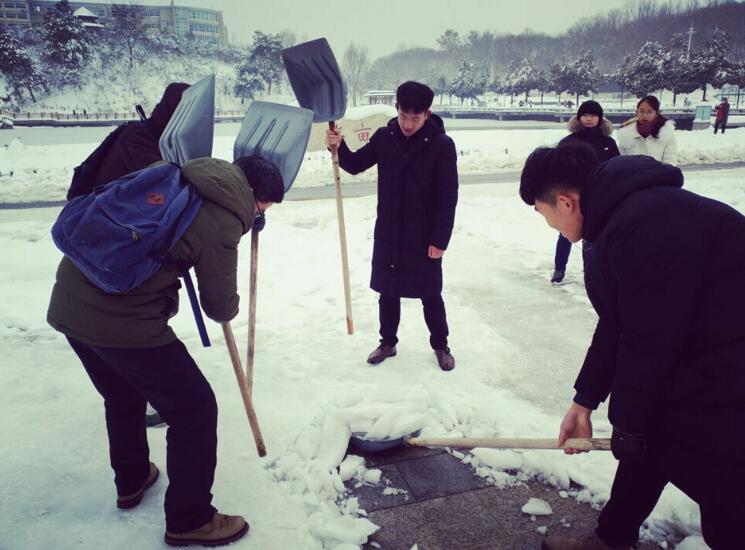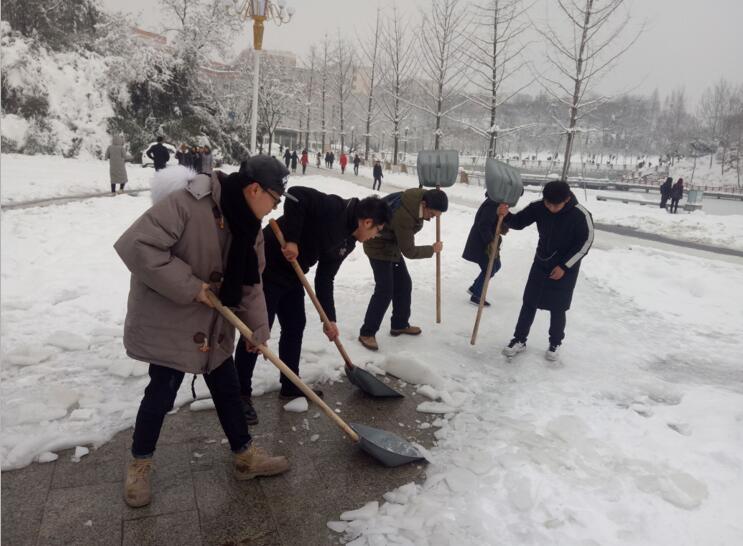 1月4日,在校团委的号召下,我院积极组织学生带上工具,顶风冒雪到教八楼前的主干道和名贵园进行义务除雪。他们凭借顽强的意志与风雪进行着斗争,即使湿了衣服、红了脸庞、僵了手指,但无一人临场退缩畏惧不前,也无一人心生怨言,大家干劲十足,用劳动诠释着青春该有的激情与热血。