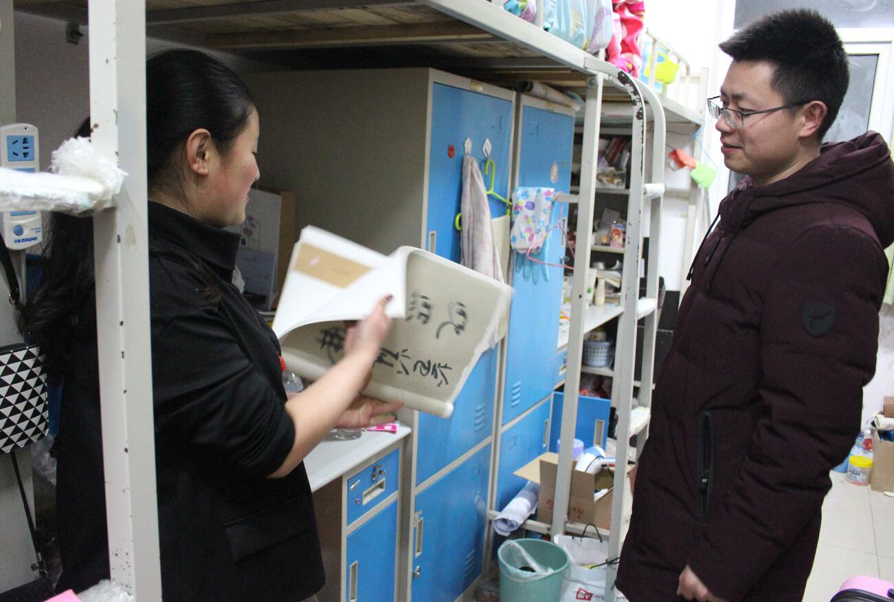 走访过程中,班主任亲切地与学生进行交谈,详细查看学生返校情况,并就宿舍卫生、规范用电、线路安全等问题进行检查,提醒同学们严禁使用违规电器,保证用电安全,叮嘱同学们要严格遵守校规校纪,杜绝一切安全隐患,时刻将安全问题放在首位。张锐等毕业班班主任重点询问了学生的考研情况,并叮嘱大家做好毕业论文和毕业创作,顺利毕业。各位班主任老师也详细了解了新学期学生的思想动态及学习生活情况,激励大家合理规划,进一步提升个人综合素质,争取更大的进步。