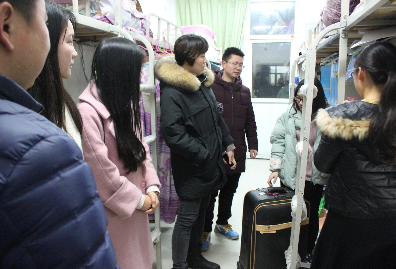 新学期伊始,为了解同学们返校与开学准备情况,3月4日晚,太阳成集团tyc33455团委书记张锐,辅导员施远、饶海虹、郑波以及班主任老师一行走访检查了我院学子宿舍。