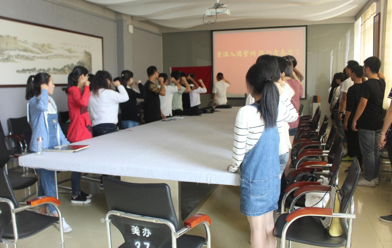 团委副书记张锐就“五四”精神进行解读,对当前大学生的精神给予肯定又提出了新的要求,希望在校大学生积极发扬“五四”精神。学生团员们首先观看了革命记录片,满怀神圣而又庄重的心理重温了入团誓词,并进行了学生团员之间的思想交流后动。在此过程中学生团员们感悟了中国共产党的光辉历程,加深了对共青团的性质、宗旨和荣辱观的认识。所有的学生团员一同表明了坚定的为共产主义事业奋斗终身的理想信念。会议的最后,全体团员共同演唱了共青团团歌。
